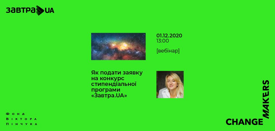 У вівторок, 1 грудня 2020 року, о 13:00 запрошуємо на вебінар, присвячений процесу подачі заявки на участь у конкурсі стипендіальної програми «Завтра.UA» Фонду Віктора Пінчука.