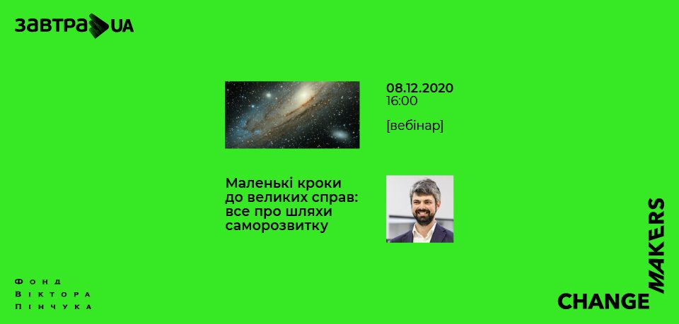 У вівторок, 8 грудня 2020 року, о 16:00 запрошуємо на вебінар на тему «Маленькі кроки до великих справ: все про шляхи саморозвитку», під час якого ви дізнаєтесь, де шукати та як отримати нові знання, уміння, враження та можливості, а також, як досягти внутрішніх трансформацій, які є запорукою змін у житті.