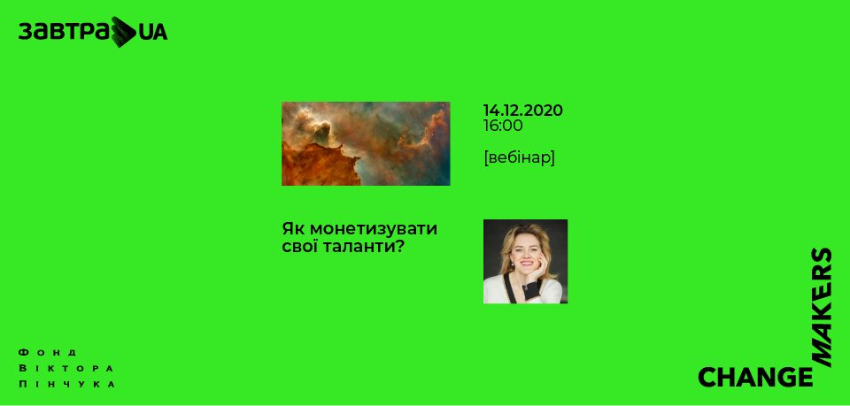 У понеділок, 14 грудня 2020 року, о 16:00 запрошуємо на вебінар на тему «Як монетизувати свої таланти?», під час якого Юлія Гайворонська, тренер з сексуальної освіти, поділиться власним досвідом та розкаже: