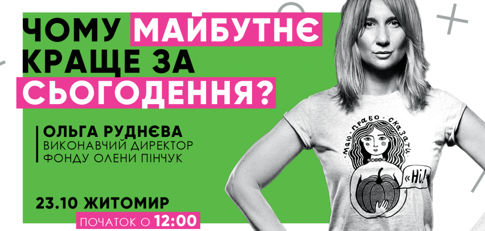 В рамках старту 13-го конкурсу стипендіальної програми «Завтра.UA» Ольга Руднєва, виконавчий директор Фонду Олени Пінчук, зустрінеться зі студентами та розповість про те, як трансформується світ та як молодому поколінню пристосуватися до мінливого майбутнього. Також Ольга розкаже про важливість соціальної відповідальності як великих корпорацій, так і окремих людей, та роль штучного інтелекту, нових засобів комунікації та медіа у нашому житті.